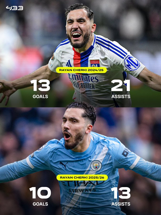 上赛季在里昂,谢尔基就交出了13球21助攻的成绩。而在加入曼城的首个赛季,法国人便贡献了10球13助攻的两双成绩。
